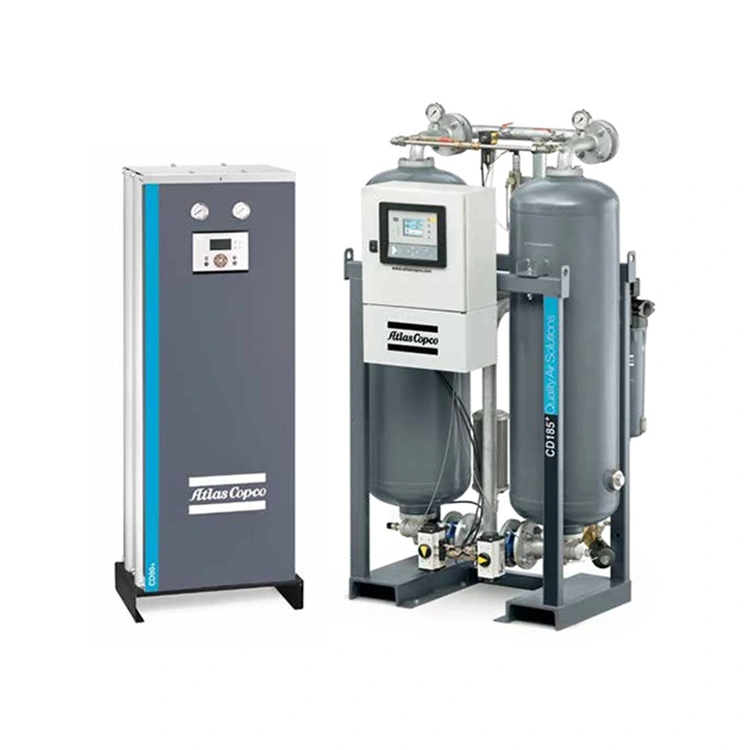 Ang mga adsorption dryer ay ginagamit kapag ang mga compressed air application ay nangangailangan ng pressure dew point sa ibaba 0°C. Ang regeneable na adsorption dryer na ito ay karaniwang binubuo ng dalawang lalagyan, na parehong puno ng desiccant. Ang isang lalagyan ay nag-aalis ng kahalumigmigan mula sa naka-compress na hangin.