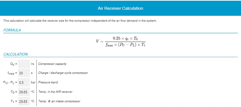 Ang isang magandang panuntunan para sa pagpili ng tangke ng imbakan ng hangin ay upang payagan ang 3-4 na galon ng hangin sa bawat rate ng daloy ng CFM, o 10-15 litro bawat litro ng naka-compress na hangin bawat segundo, depende sa uri ng air compressor na ginamit at ang aplikasyon. Katulad ng pagpili ng air compressor, maraming salik ang dapat isaalang-alang kapag tinutukoy ang naaangkop na mga detalye ng tangke ng air receiver para sa iyong system. Ang mga sumusunod na kadahilanan ay lubos na inirerekomenda: