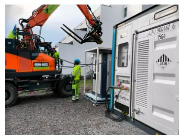 Gumagana ang Atlas Copco Fast Charger sa ZBC container energy storage system para pakainin ang isang electric excavator