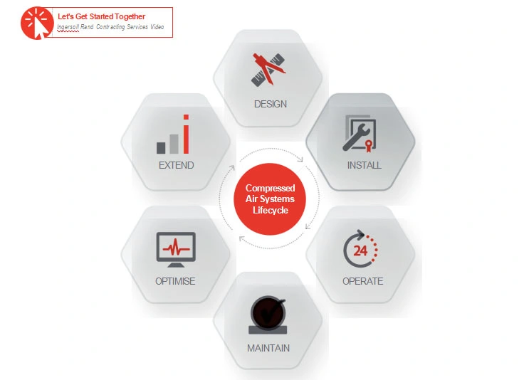 Makikinabang ang iyong negosyo mula sa pakikipagtulungan ni Ingersoll Rand sa pamamagitan ng aming malawak na karanasan at pandaigdigang kadalubhasaan upang matiyak ang pagiging maaasahan, mas mababang gastos sa pagpapanatili, kadalian ng serbisyo at pag-optimize ng system.