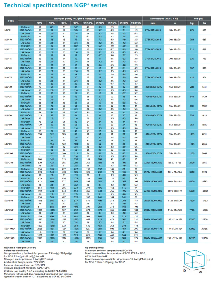 Madaling i-install, handa nang gamitin. Ang aming NGP nitrogen generators na may PSA ay naghahatid ng mataas na kapasidad na daloy ng nitrogen sa kadalisayan na kailangan mo. Angkop para sa isang malawak na hanay ng mga application.