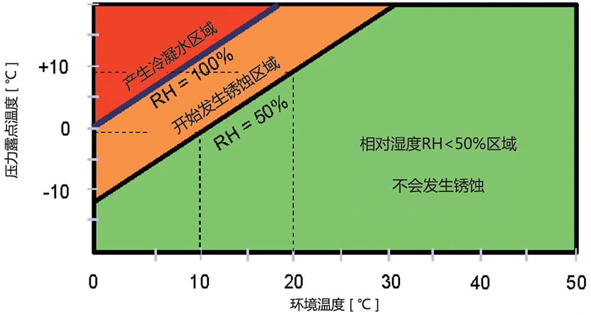 Ang karagdagang pagsusuri ay nagpapakita na ang paglamig ng naka-compress na hangin ay ginagawa lamang ang singaw ng tubig sa likidong tubig. Pagkatapos ay hinahati nito ang likidong tubig mula sa naka-compress na hangin. Ang mahinang drainage ay nagbibigay-daan sa likidong tubig na dumaloy pabalik sa mga tubo sa ibaba ng agos na may naka-compress na hangin. Ang nais na resulta ng paghihiwalay ng tubig ay hindi maaabot sa ganitong paraan. Ang condensed compressed air ay may 100% relative humidity. Kailangang tumaas ang temperatura ng hangin upang mapababa ang halumigmig na ito. Kung wala ang pagtaas ng temperatura na iyon, ang singaw ng tubig sa naka-compress na hangin ay kakainin pa rin sa mga tubo at mga tool na pinapagana ng hangin. Bumababa ang relatibong halumigmig ng naka-compress na hangin kapag pinainit. Ang cooled, condensed at dewatered compressed air ay nangangailangan ng pagtaas ng temperatura. Nagdadala ito ng halumigmig sa ilalim ng 50%.