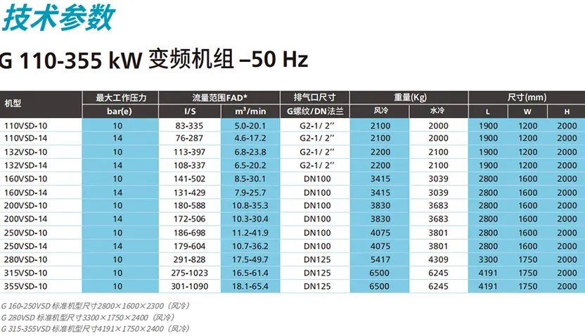 Ang VSD Variable Frequency Air Compressor ng Atlas ay espesyal na idinisenyo para sa tuluy-tuloy na operasyon. Ang sistema ng pagmamaneho ay gumagamit ng isang mahusay na permanenteng magnet na motor, na maaaring makamit ang mahusay na epekto ng paglamig ng langis. Maaaring makamit ng teknolohiya ng VSD ang pagtitipid ng enerhiya na hanggang 35%, at ang mas maliit na footprint nito ay nagsisiguro ng flexibility ng pag-install.